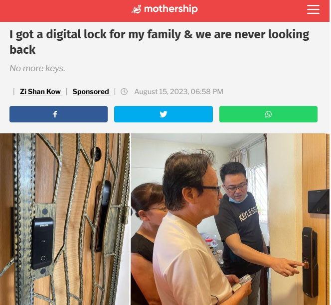 Mothership.sg featured AN Digital Lock in an article which highlighted the convenience and enhanced security offered by AN Digital Lock's products, as well as the seamless installation process and user-friendly features that cater to all ages.
